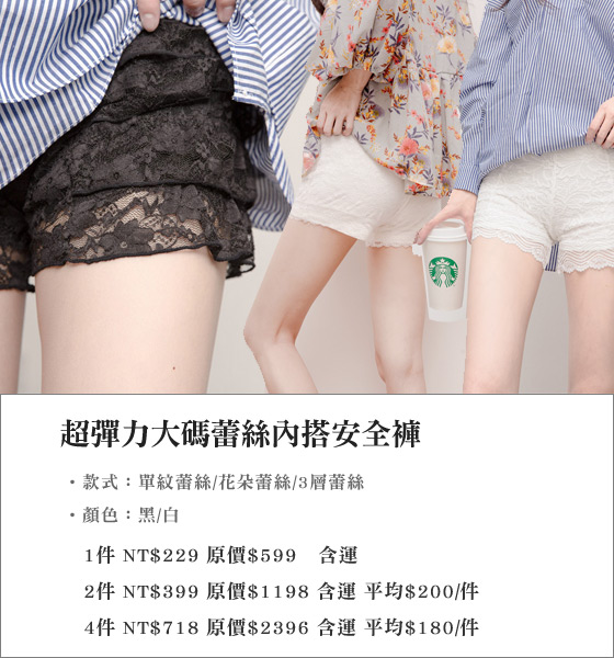 而且超彈力大碼蕾絲內搭安全褲買越多越便宜呢! 這時候就是找辦公室友人共同集資的時候了!