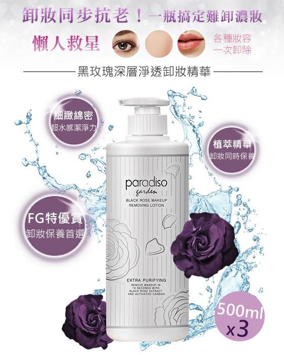 商品內容物:黑玫瑰深層淨透卸妝精華500mlx3