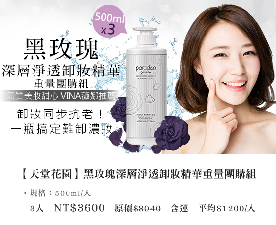就是今天,受到好朋友jason 的推薦,我買了【 天堂花園-黑玫瑰深層淨透卸妝精華重量團購組(500ml) 】